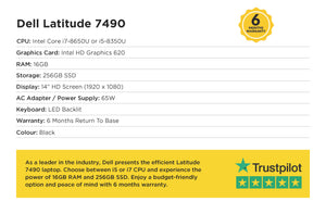 As a leader in the industry, Dell presents the efficient Latitude 7490 laptop. Choose between i5 or i7 CPU and experience the power of 16GB RAM and 256GB SSD. Enjoy a budget-friendly option and peace of mind with 12 months warranty.